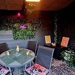 Mefady Ferienhaus Stadtkyll dysponuje tarasem z widokiem na ogród oraz prywatnym basenem kąpielowym.